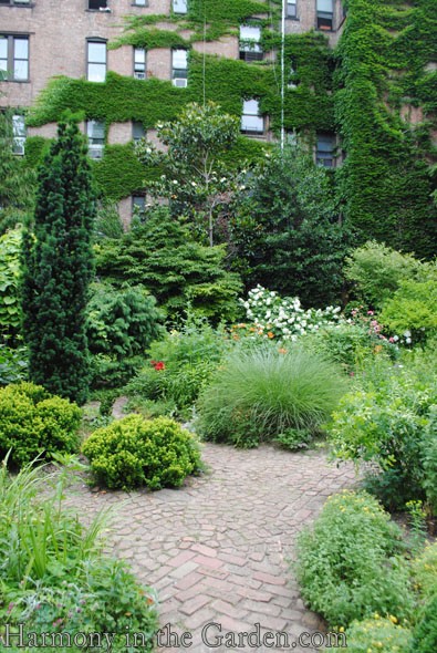 But when I stepped back and focused on small areas at a time, I could really notice the beautiful use of color in the materials used, and I began to really appreciate this garden.